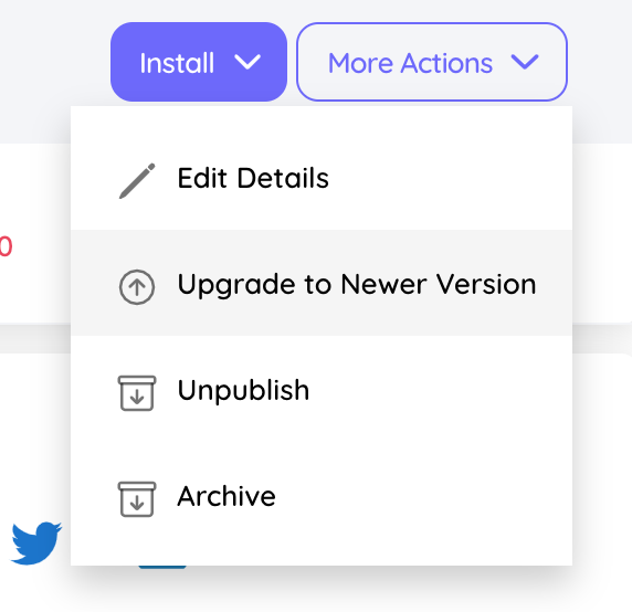 Navigate to the play that the user wihses to update. On the Play details screen, hover on More Actions. From the dropdown, select the Upgrade to Newer Version option.